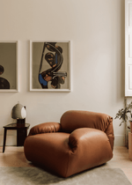 Tapizado en textiles naturales que acentúan las líneas orgánicas.